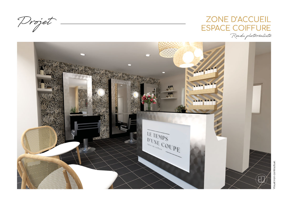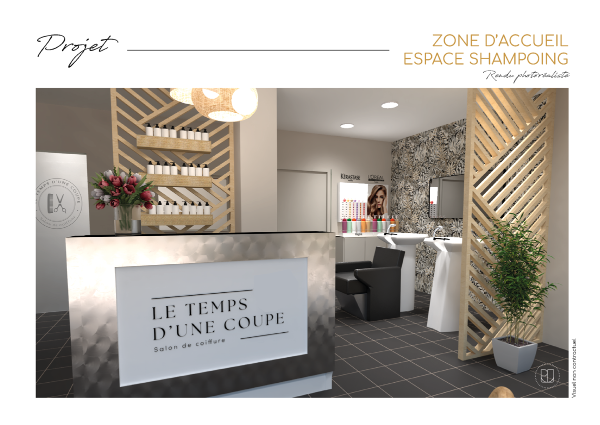 Conseils en aménagement intérieur et conception décorative d’un salon de coiffure d’une superficie de 45 m2